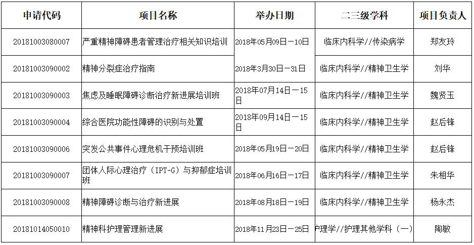 2018年市级继续医学教育项目表