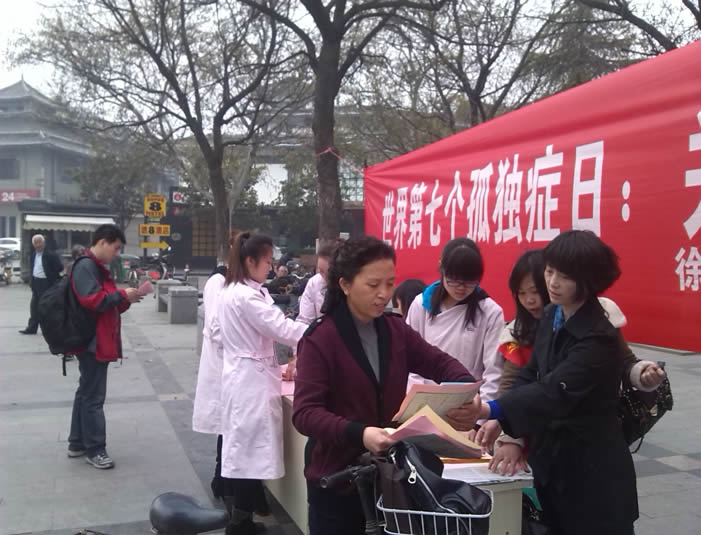 4月2日为“世界孤独症日”,孤独症作为一种严重的发育障碍,主要表现为社会交往、语言交流障碍以及刻板的行为举止,由于沟通困难,导致患者无法表达自己的需求,情况严重的甚至会有自伤或暴力倾向等。为了让更多的人了解这个群体,帮助、关心孤独症患者和家庭,近日,我院借助“世界孤独症日”这个契机,积极联合市残联举办了“世界孤独症日”宣传义诊活动。活动分别在黄河公园及解放路附近广场同时举行,活动现场前来市民络绎不绝,工作人员向广大市民发放了大量的宣传资料,市民向专家咨询日常生活中遇到的身体、心理方面的问题,专家们进行耐心讲解,一对一咨询。