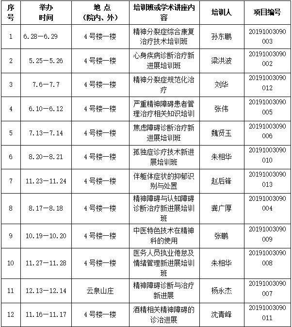2019年继续教育项目统计表