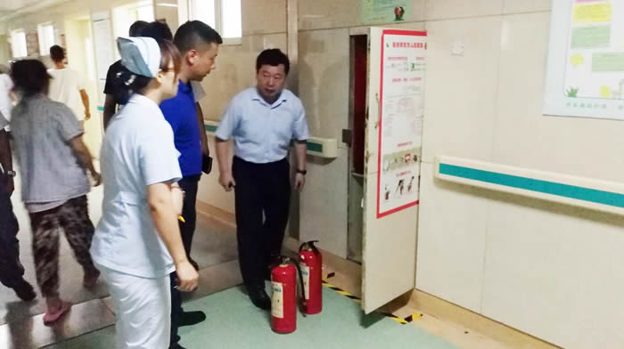 夏季气温炎热,风干物燥,为切实做好医院消防安全工作,有效遏制各类火灾事故的发生。8月15日,院党委书记刘加彬带领保卫科对住院部、新门诊病房楼开展消防安全检查。此次检查主要对各病区的消防设备设施的运行情况、安全措施等方面进行重点检查,确保消防设备设施的正常运行。刘书记现场提问医护人员“一懂三会”内容,查看灭火器检查标签是否如时填写,检查各病区消防台账建立情况等,对检查中发现的隐患、问题要求相关病区及时整改。