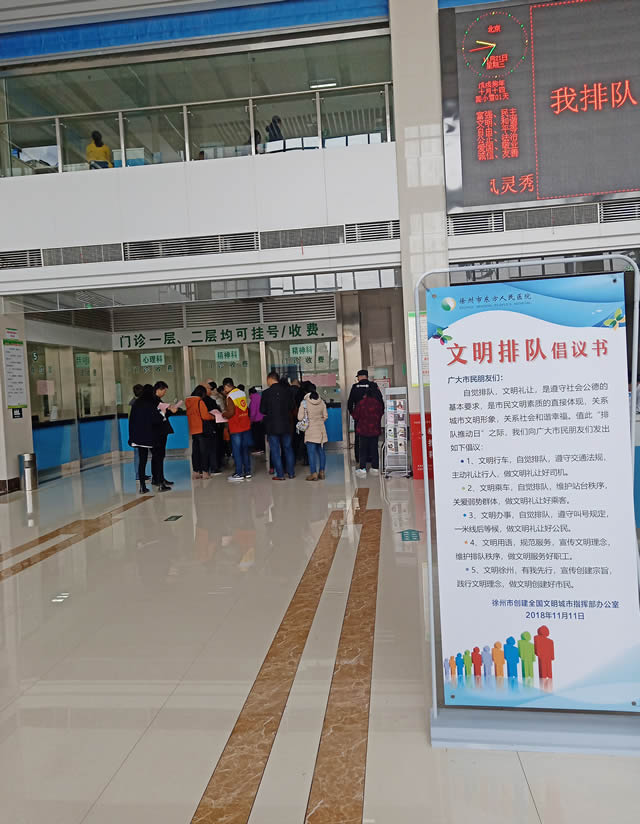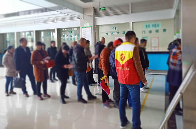 为进一步提升市民文明素养,塑造文明整洁的就医环境,我院积极开展了以“我排队,我文明,我快乐”为主题的宣传活动。11月11日起,医院在门诊大厅显著位置摆放了文明排队倡议书宣传牌,志愿者们向前来就诊的市民发放了“文明排队倡议书”,倡导大家践行文明,在一米线外排队,以共同携手打造一个和谐温馨的公共空间,塑造出健康向上的社会风气。此举获得了就诊者的一致认同,大家积极响应,就诊、等待、排队井然有序。