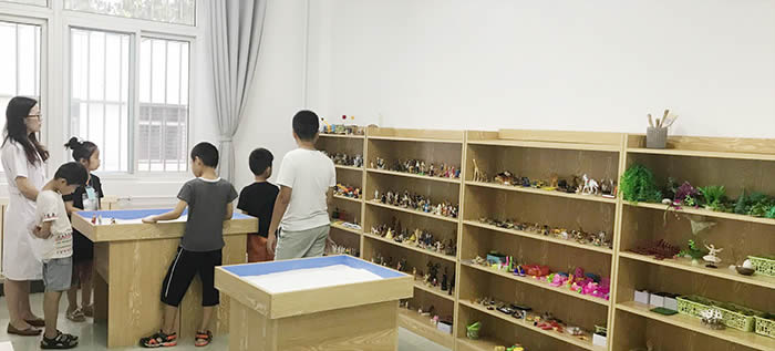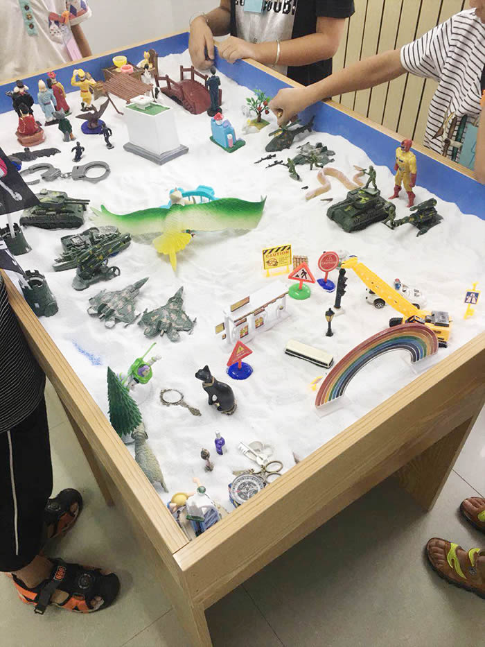 随后在培训室和沙盘游戏心理治疗室分别为家长和孩子开展了父母心理健康讲堂以及沙盘游戏体验活动。
