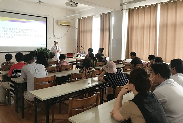 为了普及心理健康知识,丰富患者及家属在院期间的精神生活,提高患者的心理健康水平,促进其早日回归社会,我院心理咨询与治疗中心日前举办了以“解决冲突的关键技巧”为主题的公益讲座活动,由咨询师张停停主讲。