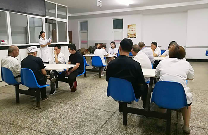 培训中,营养科夏主任讲解了强制病区的特殊性,要求食堂从业人员转变服务理念,切实提高住院患者一日三餐的膳食质量。同时,夏主任从提高烹调技术与方法,保证营养素不受损失,增加高蛋白饮食等方面要求食堂加强从食材选购、粗加工、制作、烹饪,由大锅菜改为分锅、分灶烹调,有效提高色、香、味和主副食的质量。