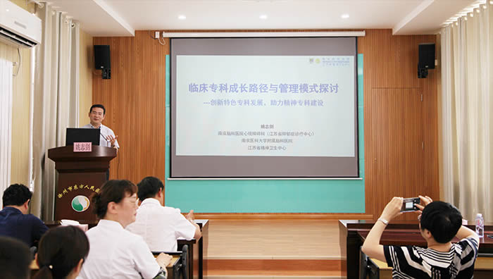 此次培训邀请南京脑科医院博导姚志剑主任医师授课。培训中,姚主任结合省内第一个抑郁症诊疗中心的建设历程与大家探讨了《临床专科成长路径与管理模式》;讲授了临床科室在制度管理、科研兴科、内涵质量和跨越发展方面的做法;