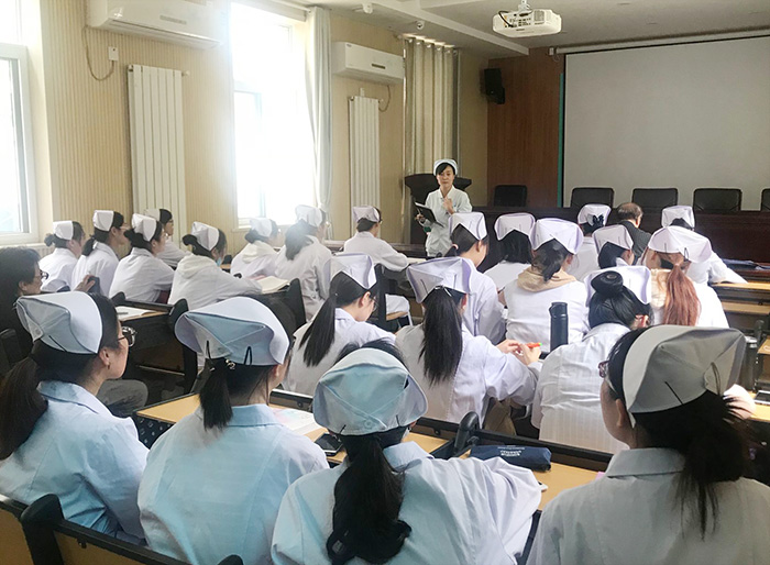 本次见习教学由李莹护士长主持。李护士长强调了见习纪律并按照计划将见习学生分为四组,由带教老师分别带入病区,然后依次介绍病区环境、精神科患者特点、精神科护士工作流程、保护性约束用具的规范化使用,然后由工作人员进行现场演示。根据精神科患者特点结合书本内容选择1-2名患者作为临床案例进行精神科护理相关知识讲解,并给学生提供和患者接触的机会,使学生能够将书本的知识和实际案例相结合,增加学生对基础知识的理解和掌握。现场气氛活跃,学生积极性极高,学习氛围十分浓厚。