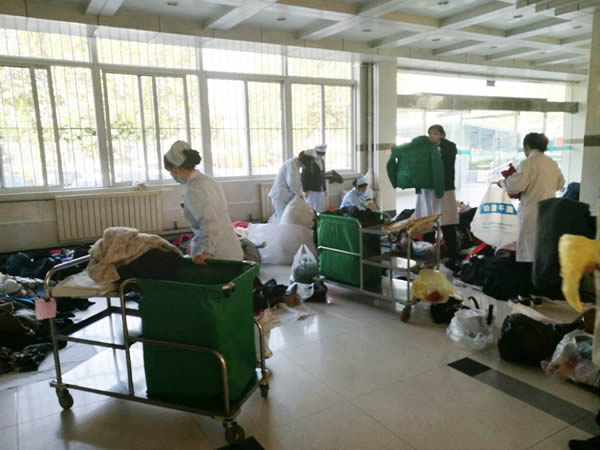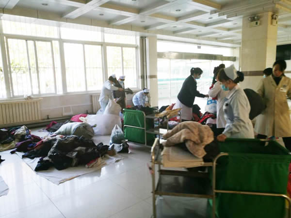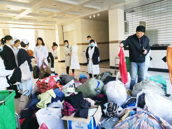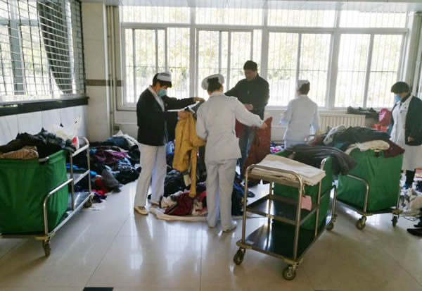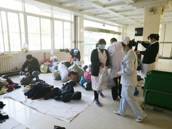 “天气寒冷,人间有爱,捐一份衣物,留一份真情 ”,全院200多位职工积极响应,纷纷拿出家中衣物,清洗干净,有的考虑到患者急需,甚至捐出了没太穿过新衣,一会功夫就捐到衣裤鞋袜2000多件,各精神科病房的护士长像对待亲人一样亲自为科内住院患者挑选四季的衣物,有1000多件衣物立即被6个精神科“瓜分”,面对余下的衣物,护士长们还惋惜的说,这件小了些,否则,我们病房的谁就能穿。