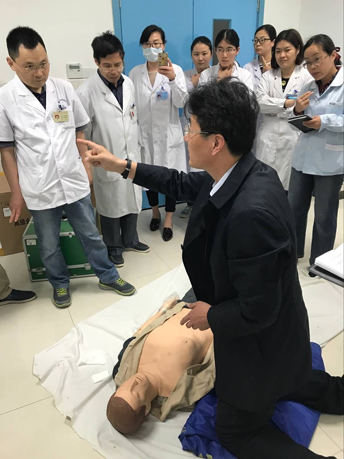 5月3日,我院邀请徐州医科大学附属医院急救中心副主任燕宪亮教授,为医护人员进行急救知识操作培训,各临床科室二线值班人员及急诊科全体人员参加了此次培训。