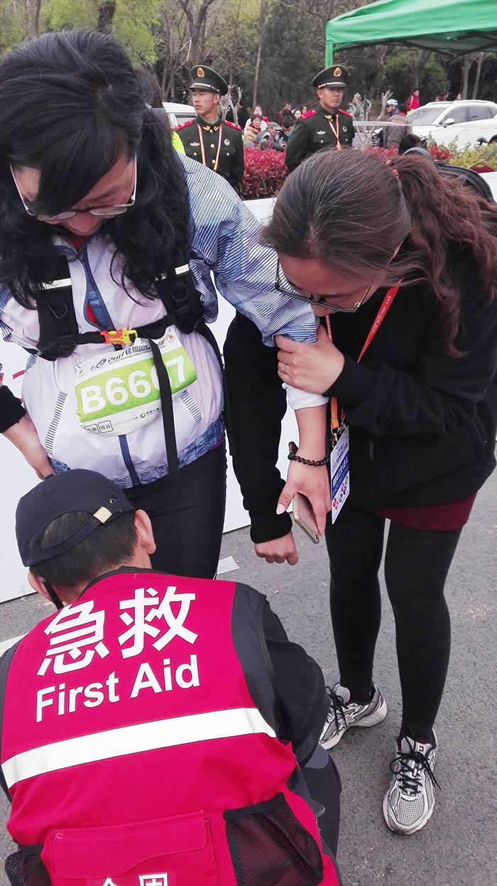 此次我院应急队伍负责的路段为全马和半马必经的9公里-12公里路段,队员们密切关注运动员的面色、步态,及时为需要提供医疗帮助的运动员给予医疗救治,提醒各运动员“调整呼吸、掌握速度、重在参与”,保障运动员安全竞赛。11:30分在收容车上的朱晶、童柱两位医师陪伴最后一名半马运动员完成比赛后,我院在的医疗应急保障工作顺利结束。