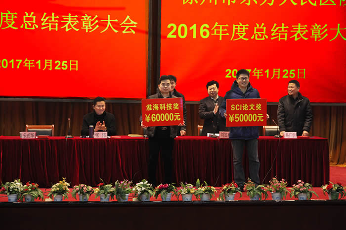 大会对获得2016年度先进集体、先进个人、医德考评优秀个人、护理优质服务“最满意护士”、先进科技工作者、优秀教师和宣传工作先进科室、先进个人等进行了表彰,对取得淮海科技奖和发表SCI论文的朱相华、张才溢两位同志,根据医院科研教学管理办法给予了重奖,达到了表彰先进、激励大家的良好作用。