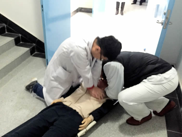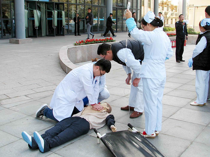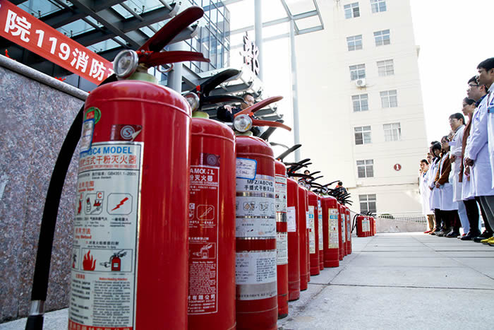 为了进一步强化医护人员的消防安全意识,提高防范自救能力,根据市卫生计生委和云龙区消防大队的工作要求,我院紧紧围绕“消除火灾隐患,共建平安社区”这一主题,于11月11日下午在新门急诊大楼进行了消防演练,邀请市卫生计生委办公室赵主任、消防大队蒋教官莅临我院指导演练工作。随着警报声的响起,演习正式开始。医院紧急成立灭火和应急疏散指挥部,负责灭火和应急疏散工作的组织领导;同时安排布置救援工作,向上级报告情况与消防队等有关部门联系,采取紧急救援措施,控制事态,最大限度的减少损失。医护人员组织抢救患者并现场指导患者火场逃生守则:猫腰,用湿毛巾捂鼻,依次排队按照就近原则溜墙边疏散,不准推搡和慌乱。消防监控室值班人员用消防广播通知该楼层进行疏散,电梯迫降。等到患者全部安全逃离火区,灭火组进入火区灭火。观看演练后,蒋教官进行讲解火灾逃生自救能力。随后,该院新入职职工学习如何使用灭火器并进行演练。