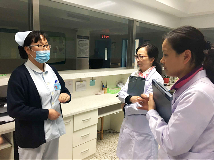 10月27日上午,省卫计委护士临床护理能力考核专家组一行莅临我院,对我院护士进行了护士临床工作能力专项考核。检查开始前,杨永杰院长向考核专家组就我院的发展情况及全院护理工作做了简单汇报介绍,随后考核专家组分成三组,直接深入临床一线,分别到精神二科、精神三科、老年精神科、心理一科、心理三科进行现场考核。
