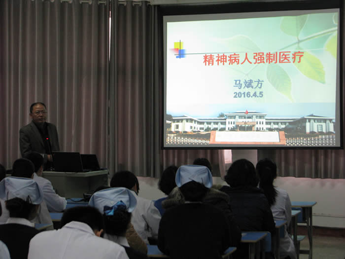 4月7日,我院邀请了杭州市安康医院相关专家来院指导交流强制医疗工作,该院马斌方院长就强制医疗管理等内容对我院医护人员进行了专题培训。我院医生、护士、行政人员共78人参加了此次讲座。