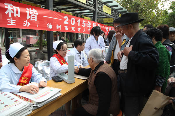 10月8日上午,该院精神科、心理科专家、护理人员等来到鼓楼区王场小区中心广场,举办《心理健康 社会和谐――2015年“精神卫生日”宣传进社区》活动,现场接受市民咨询,工作人员现场为市民开展测量血压、身高、体重等便民服务。