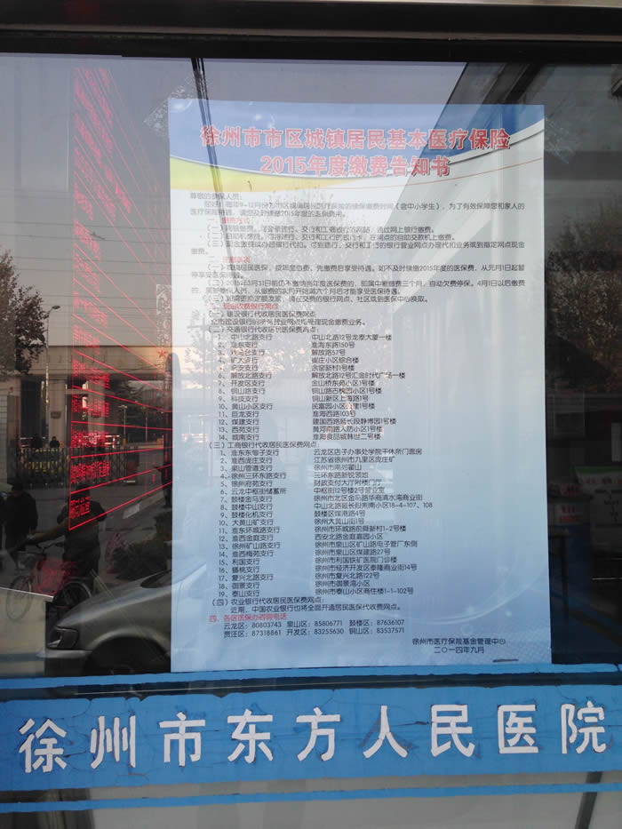 2015年度城镇居民基本医疗保险缴费已经开始,按照徐州市医疗保险基金管理中心的统一部署,我院积极开展了2015年度居民医保缴费宣传工作。