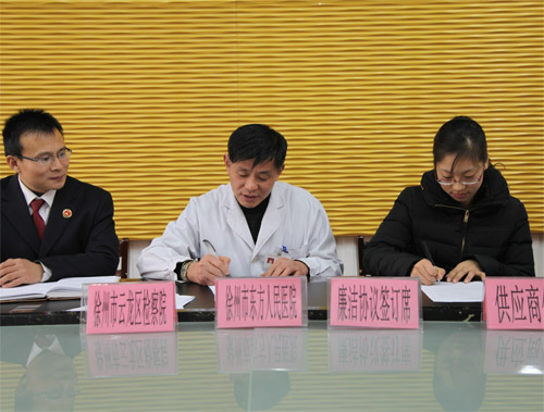 随后我院与来自药品、试剂耗材、医疗器械共25家经销商代表签订了廉洁购销合同。供应商代表也在会上作了表态发言,对医院的举措表示理解与支持,并表示坚决履行廉洁协议,自觉防范商业贿赂和不正当竞争,与医院一起共同营造和谐、规范的购销环境,不断促进我院的行风廉政建设,保障人民群众的切身利益。