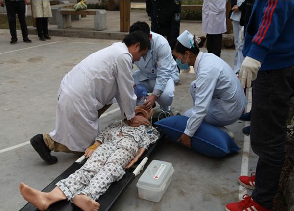此次演练分为两个科目,消防应急疏散演练和实地灭火演练。医院为了使此次活动达到预期效果,特邀请了市防火教育中心的蒋教官进行现场指导,演练模拟了真实火灾现场进行疏散、施救和灭火。此次演练参训人员共计120余人,分别参与了指挥协调、通信联络、灭火行动、疏散引导和安全救护工作,共疏散病员40人。演练结束后,参训人员听取了防火中心教官的指导意见和评估总结。
