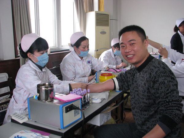目前,市血液中心的血液库存量持续下降,血液的短缺时刻威胁着患者的生命,为缓解各医院临床用血紧张的状况,我院职工积极发扬“救死扶伤”的人道主义精神,主动献血、奉献爱心,全院掀起了踊跃报名义务献血的热潮。1月23日下午,我院职工早已等候在采血现场,大家纷纷咨询血站工作人员关于献血的有关知识,认真填写了信息资料,然后进行验血、抽血,活动一切都井然有序的进行。院党总支书记杨永杰同志也亲临现场带头献血,据了解,此次献血活动,全院报名60人,献血成功45人。