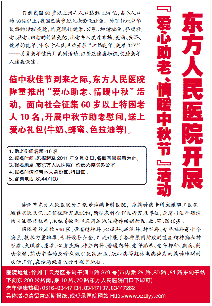 市东方人民医院面向社会征集100名老人免费体检