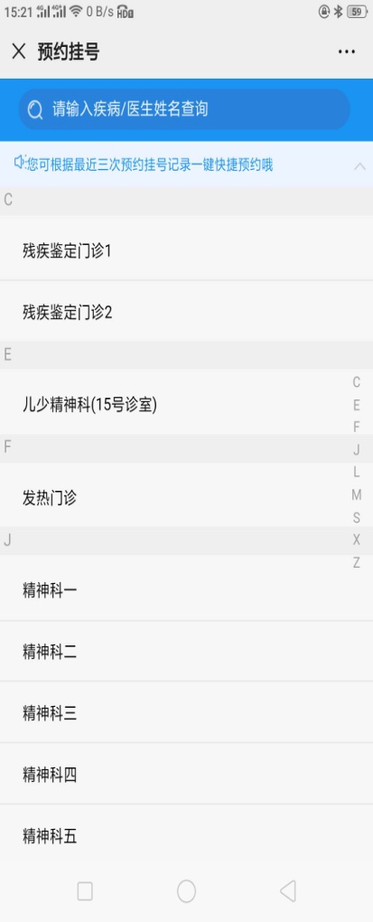 5.选择需要就诊的科室或者输入疾病/医生姓名查询进行预约。