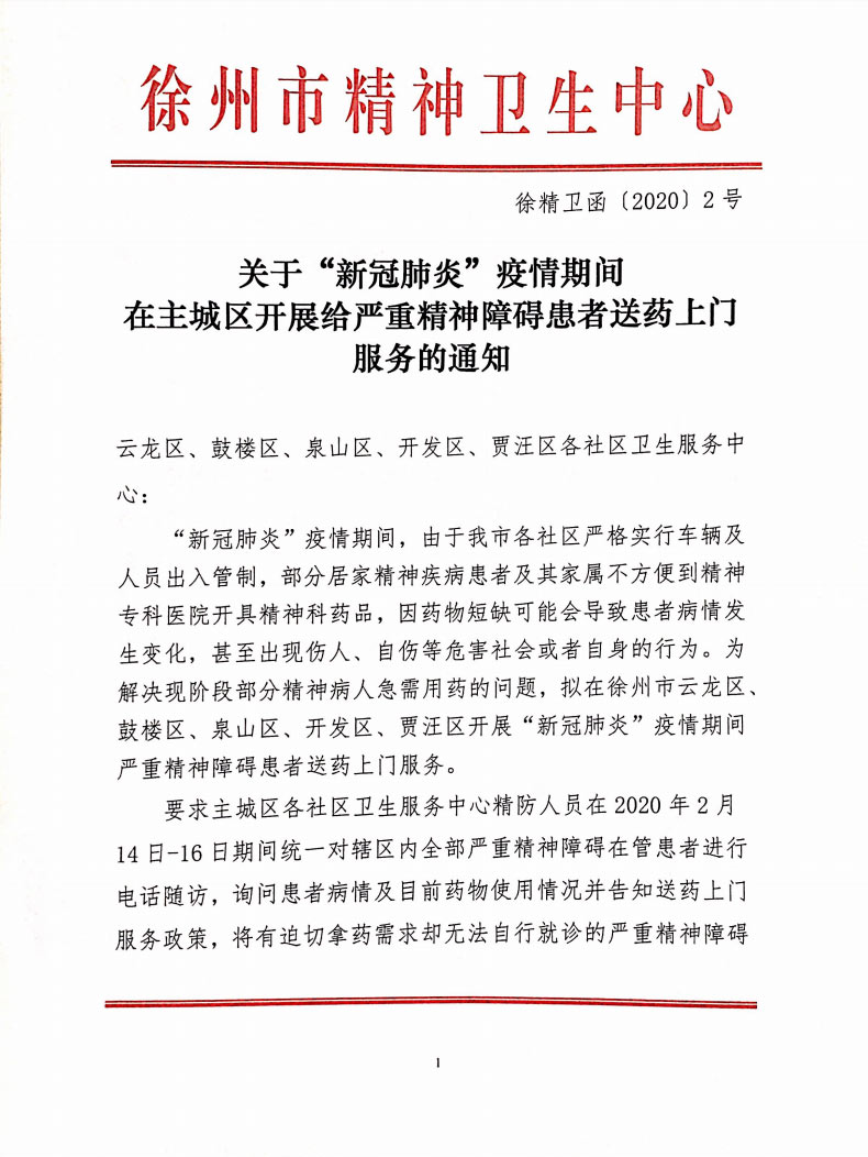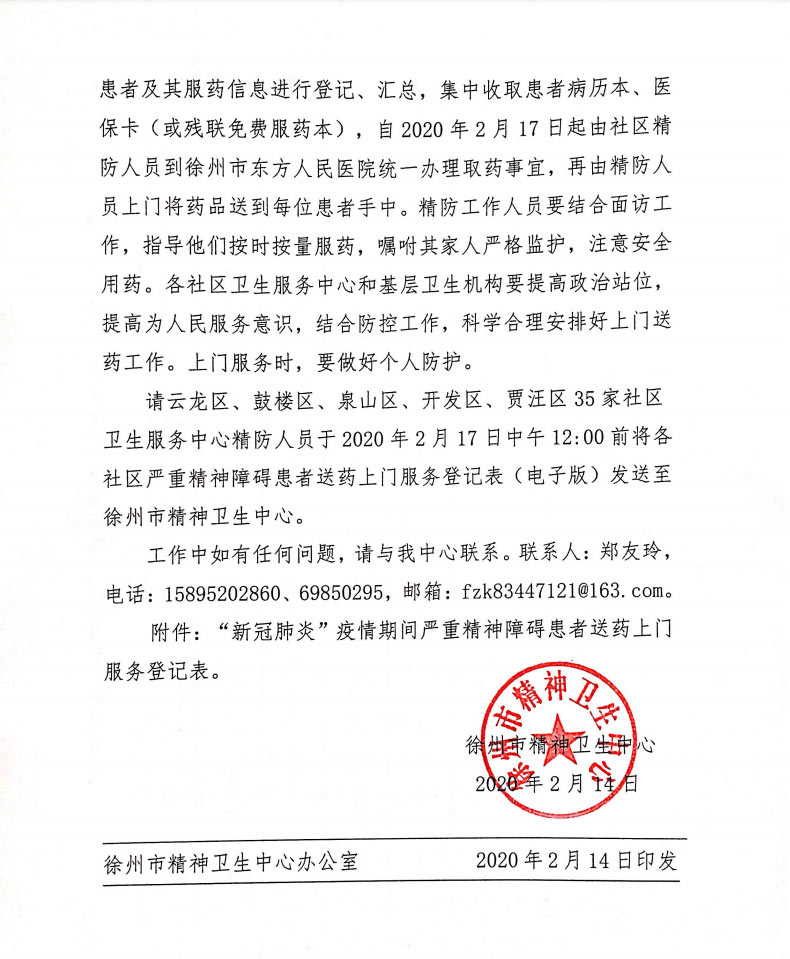 关于“新冠肺炎”疫情期间在主城区开展给严重精神障碍患者送药上门服务的通知