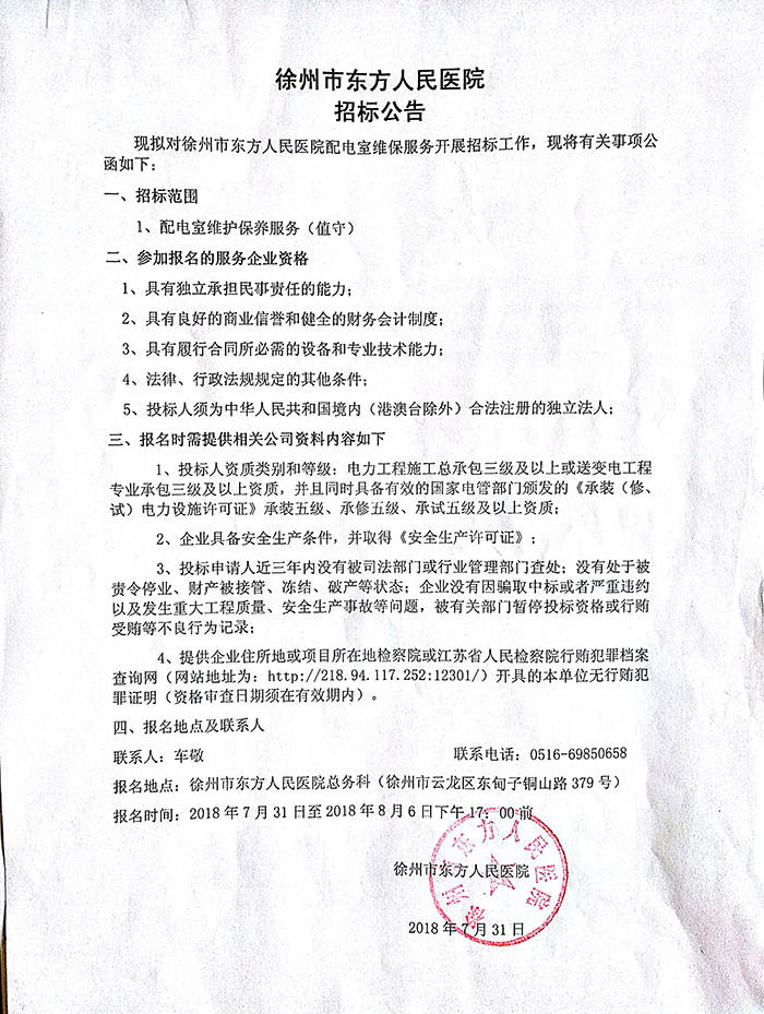 徐州市东方人民医院 2018年公开招聘合同制人员简章