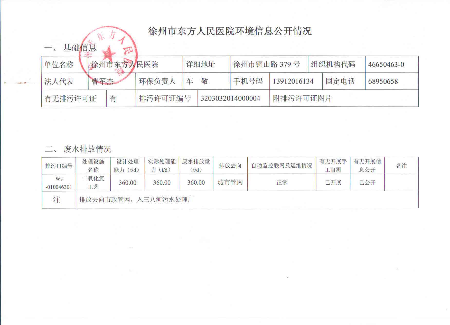 徐州市东方人民医院环境信息公开